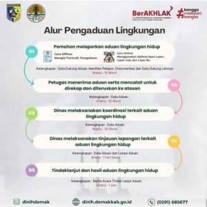 dinlhdemak 04/08/2025 Publikasi 0 Comments ALUR PENGAADUAN LINGKUNGAN DINAS LINGKUNGAN HIDUP KAB.DEMAK Post Views: 29 Posted in Publikasi Post navigation Previous Previous post: LAPORAN SURVEY KEPUASAN MASYARAKAT TAHUN 2024 DINAS LINGKUNGAN HIDUP KAB.DEMAKNext Next post: NILAI IKU (INDEKS KUALITAS UDARA) KABUPATEN DEMAK TAHUN 2024 Related Posts Apel Pagi Penuh Makna, DLH Demak Teken Kinerja & Umumkan Role Model ASN BerAKHLAK 04/02/2026 Berita PT Cipta Kayu Sejati Salurkan Bantuan Bibit Tanaman kepada Dinas Lingkungan Hidup Kab. Demak 04/02/2026 Berita Dinas Lingkungan Hidup Kab. Demak Terima Bantuan 50 Bibit Tanaman Berbuah dari PT Aroma Kopi Krim Indonesia (Arkof) 31/12/2025 Berita Leave a Reply Cancel replyYour email address will not be published. Required fields are marked *Comment * Name * Email * Website Save my name, email, and website in this browser for the next time I comment. Δ